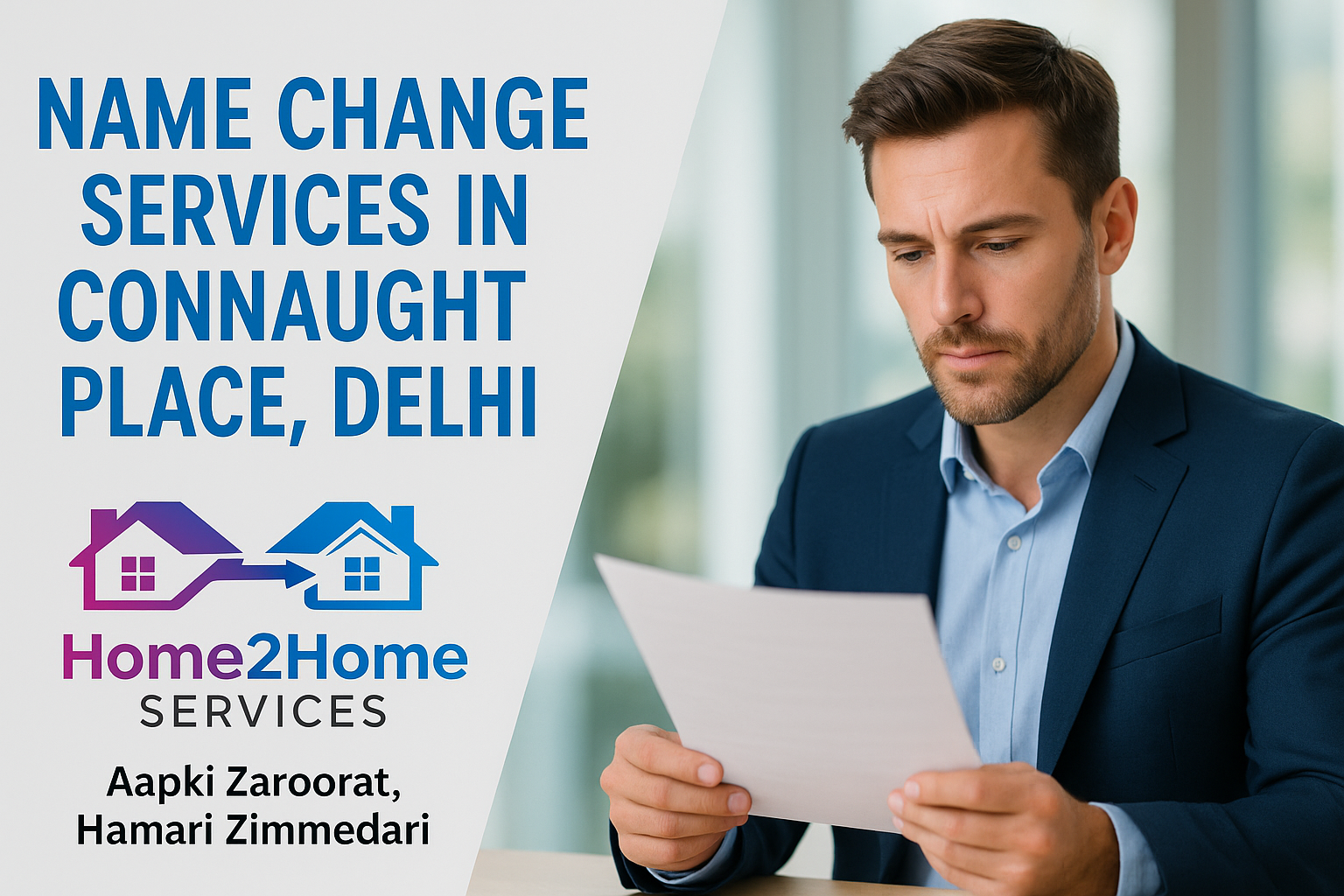 Looking for a reliable name change consultant in Connaught Place, Central Delhi? Home2Home Services provides expert guidance and complete support for changing your name legally in Delhi. Whether it is after marriage, divorce, adoption, spelling correction, numerology, or personal reasons, we handle the entire process end-to-end so you do not face delays or rejections.